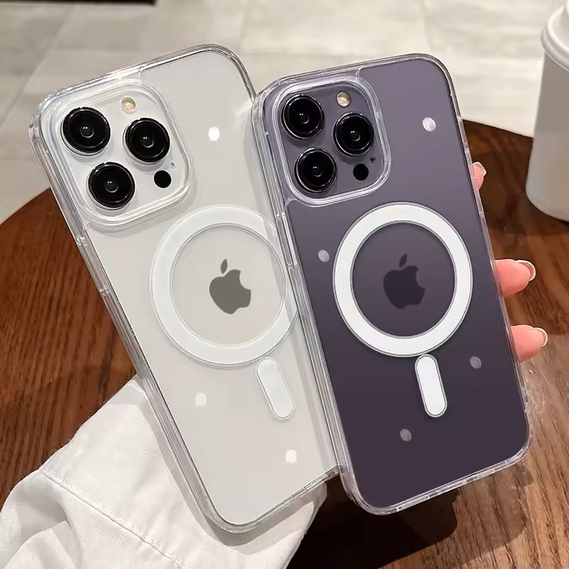 iPhone 14 için Magsafe uyumlu, güçlü mıknatıslı şeffaf kılıf. Tam kamera lens koruması, çizilmez ve sararmaya dayanıklı. Wireless şarj ile sorunsuz çalışır.