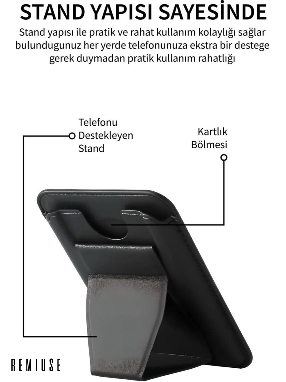 Remiuse Magsafe Uyumlu Telefon Kartlık ve Standlı Cüzdan